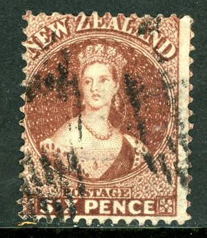 New Zealand 1864 QV 6p Brown Perf 12½ Scott #36 VFU Q477