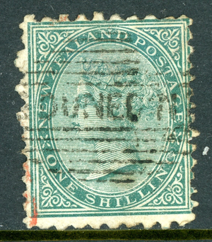 New Zealand 1874 QV 1s Green Perf 10x 12½ SG 177 VFU Q501