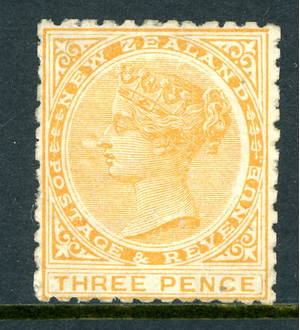 New Zealand 1882 QV 3p Yellow Perf 12x11½ Wmk 12a SG 189 Mint Q504