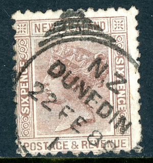 New Zealand 1882 QV 6p Brown Perf 12x11½ Wmk 12a SG 191 VFU Q506