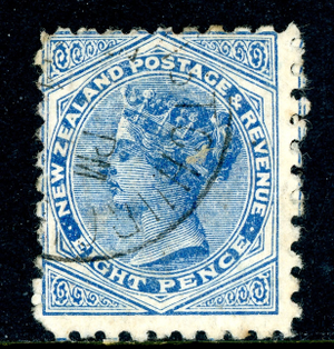 New Zealand 1882 QV 8p Blue + Soap SG 225 VFU Q507