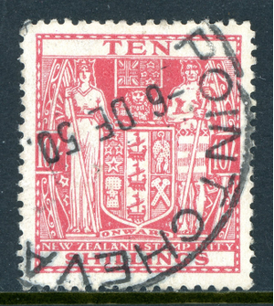 New Zealand 1931 Postal Fiscal 10' Carmine Lake SG #F155 Scott #AR56 VFU Q616