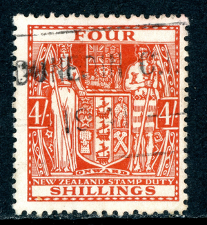 New Zealand 1931 Postal Fiscal 4' Red SG #F148 VFU T940