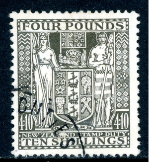 New Zealand 1935 Postal Fiscal £4 10' Deep Olive Gray SG #F167 VFU T945