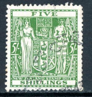 New Zealand 1936 Postal Fiscal 5' Green SG #F172 VFU T950