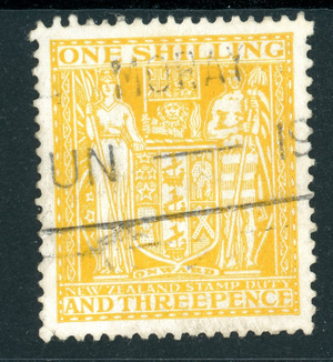 New Zealand 1940 Postal Fiscals 1'3p Orange Yellow SG #F191 VFU T956