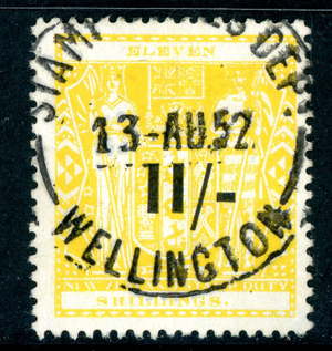 New Zealand 1942 Postal Fiscal 11' Yellow SG #F215 VFU T989
