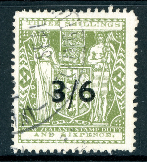 New Zealand 1942 Postal Fiscal 3'6p Gray Green SG #F212 VFU T987