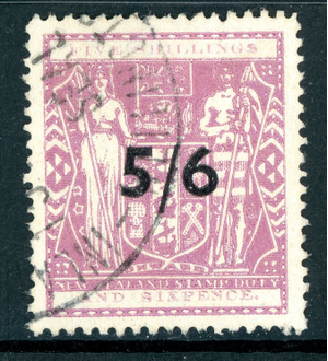 New Zealand 1942 Postal Fiscal 5'6p Lilac SG #F214 VFU T988
