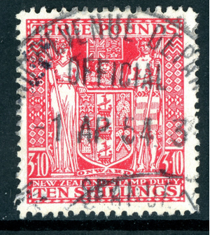 New Zealand 1948 Postal Fiscal £3 10' Rose SG #F209 VFU T982
