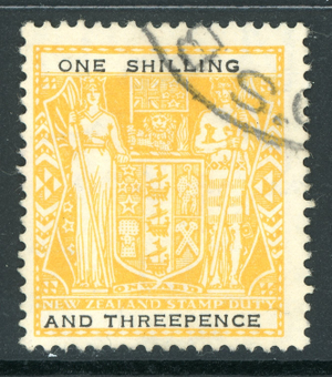 New Zealand 1955 Postal Fiscal 1'3p Yellow & Black SG #F192 VFU T959