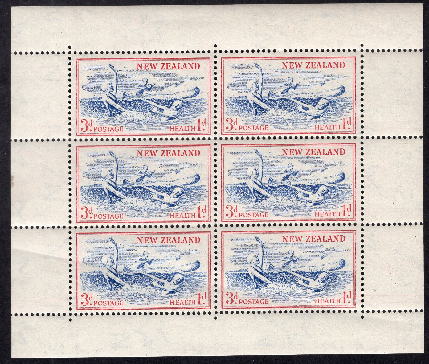 New Zealand Scott B53A. Miniature sheet of 6. Mint. Never hinged. Crease.