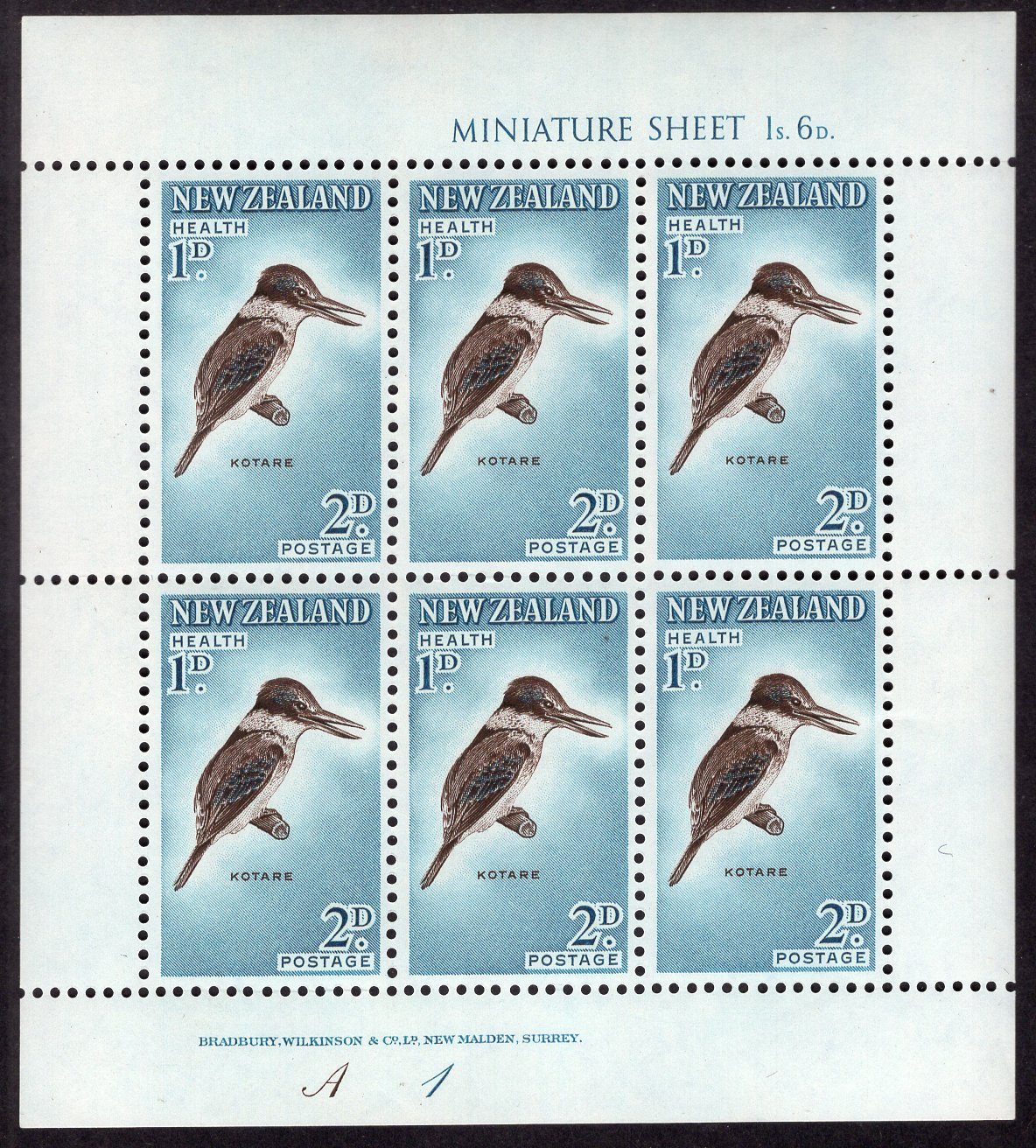 New Zealand Scott B59A. Miniature sheet of 6. Mint. Never hinged.