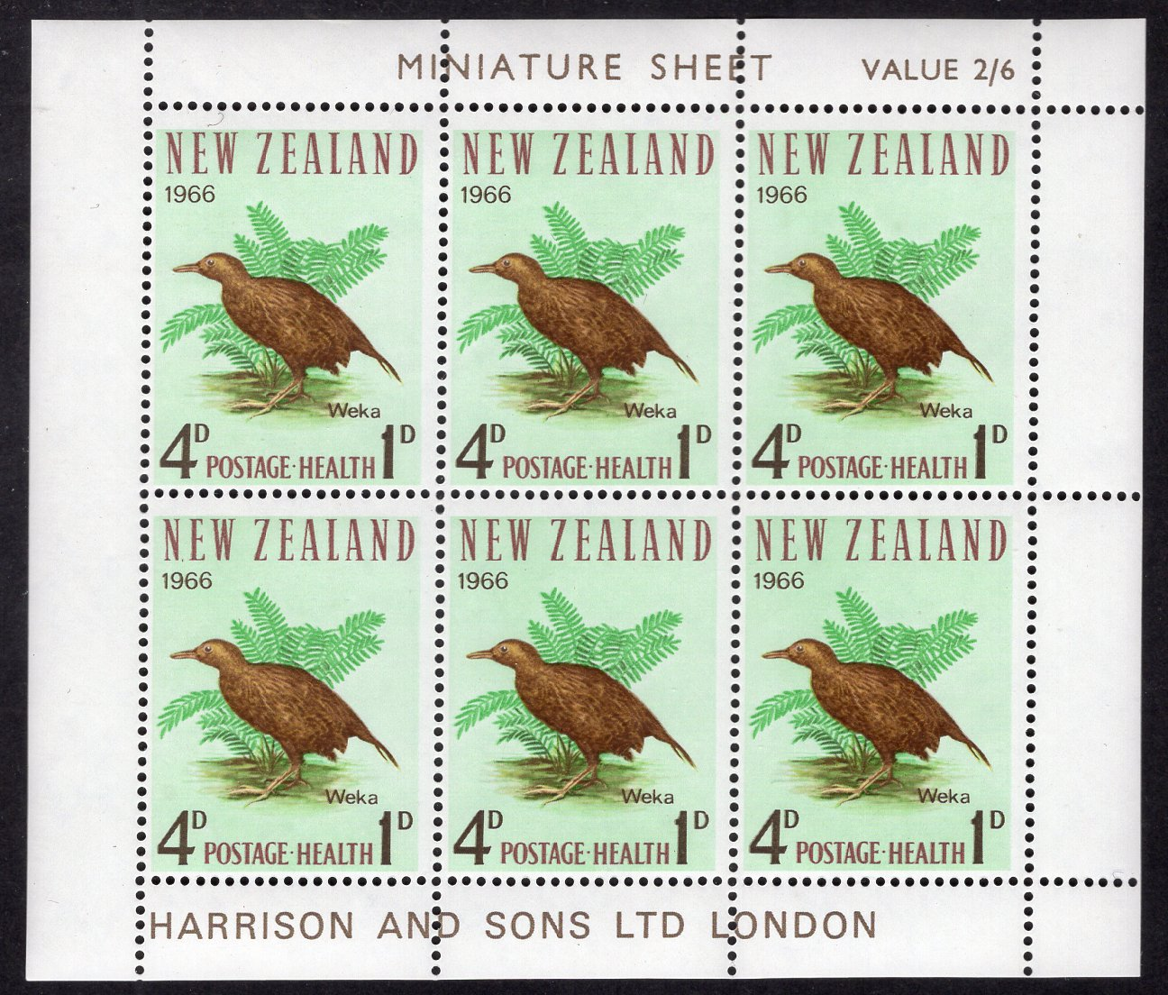 New Zealand Scott B72A. Miniature sheet of 6. Mint. Never hinged.