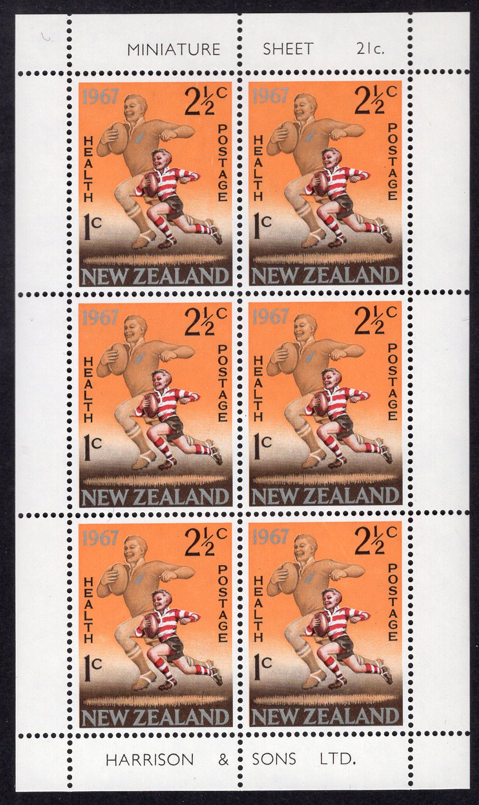 New Zealand Scott B73A. Miniature sheet of 6. Mint. Never hinged.