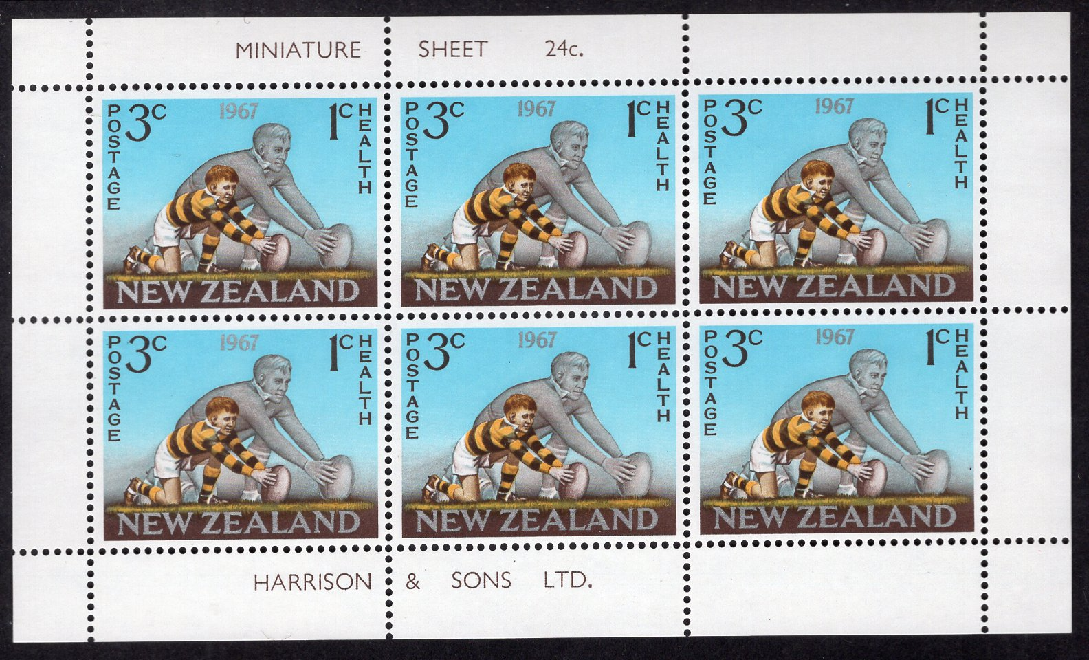 New Zealand Scott B74A. Miniature sheet of 6. Mint. Never hinged.