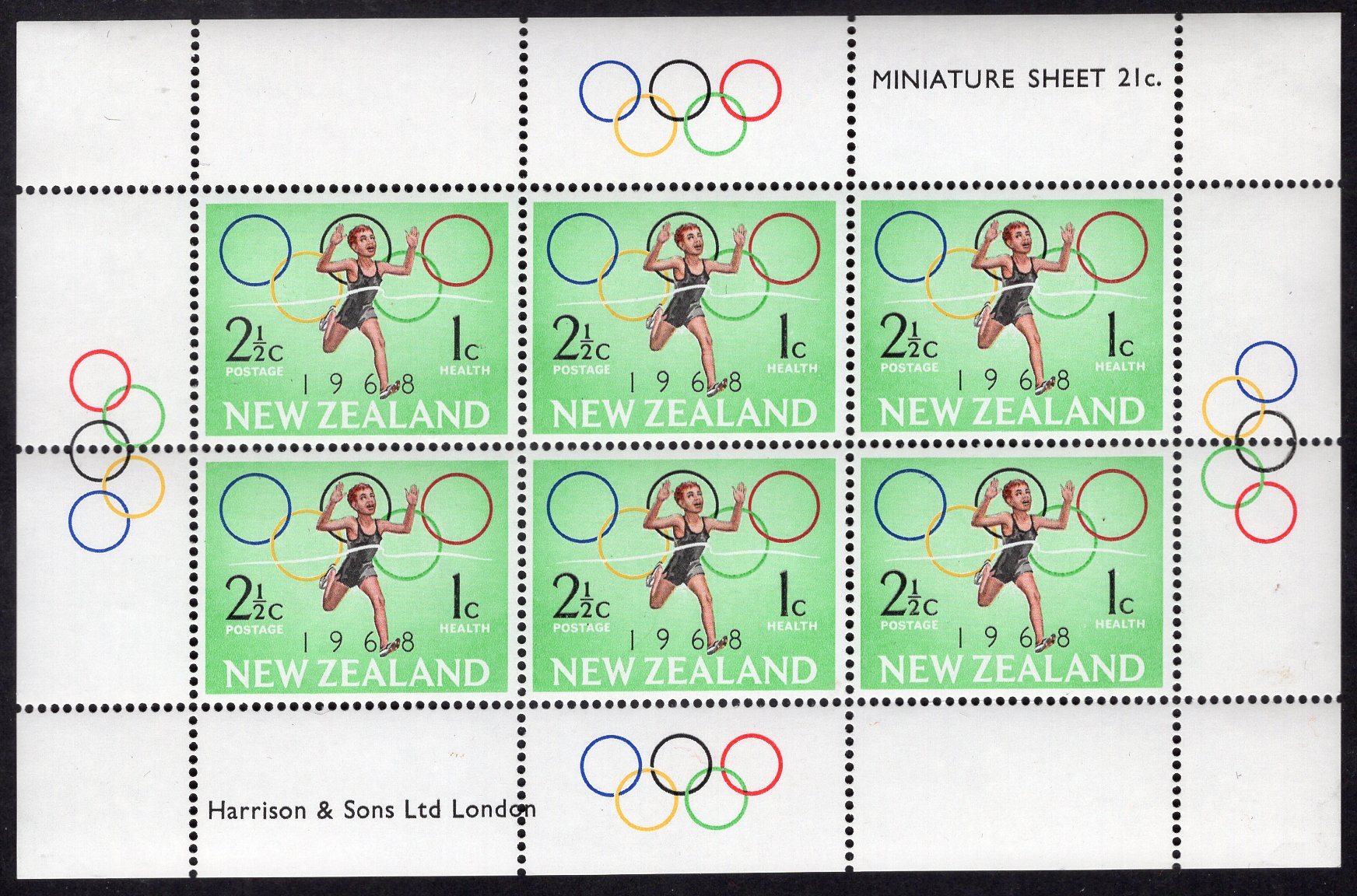 New Zealand Scott B75A. Miniature sheet of 6. Mint. Never hinged.