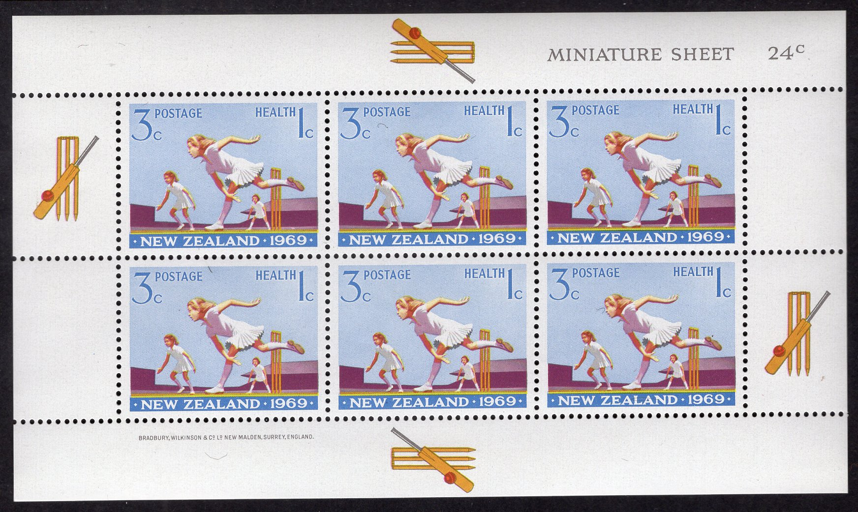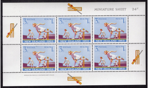 New Zealand Scott B78A. Miniature sheet of 6. Mint. Never hinged.