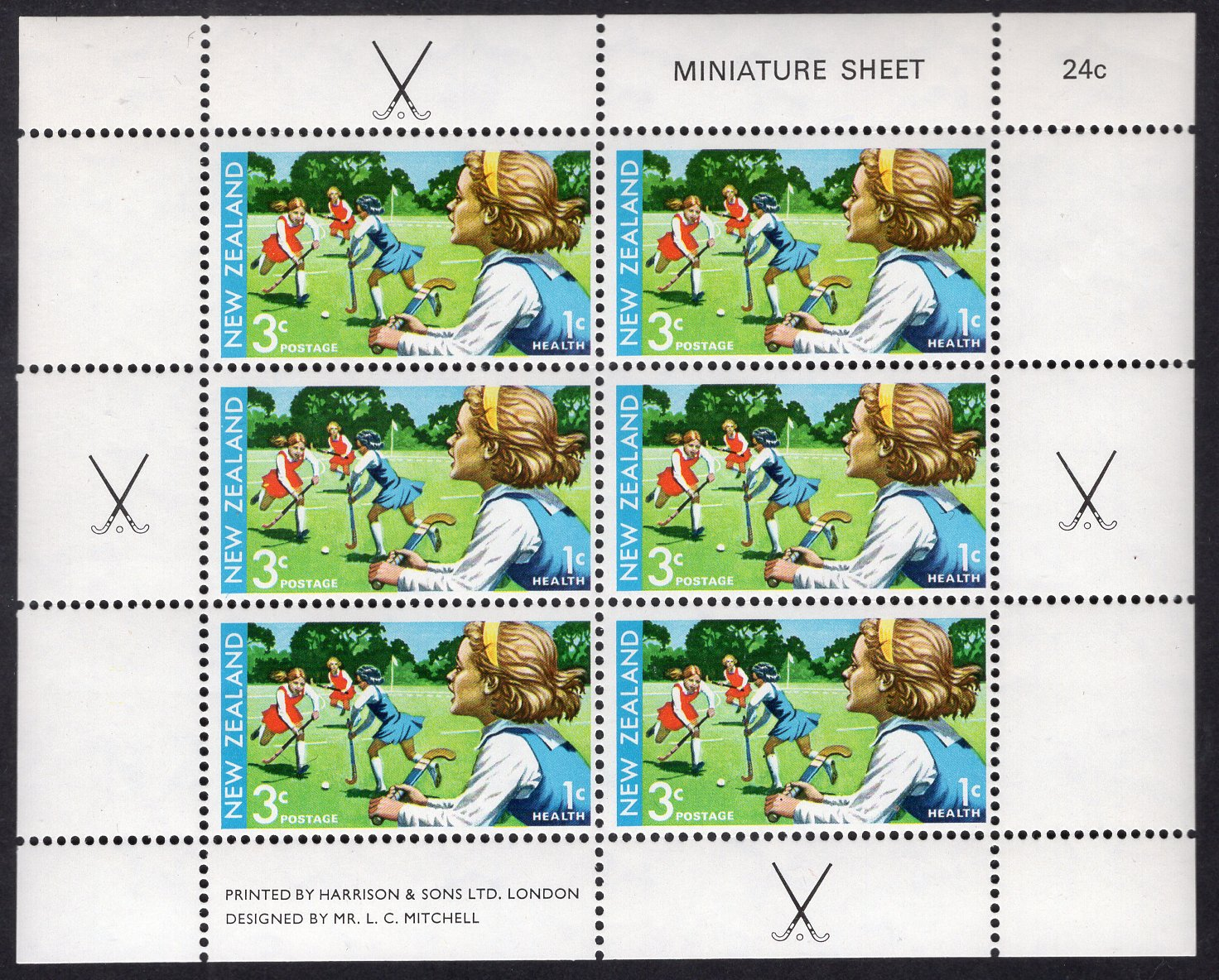 New Zealand Scott B82A. Miniature sheet of 6. Mint. Never hinged.