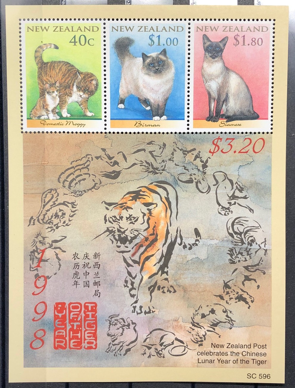 | Domestic cats, year of the tiger, Chinese zodiac, 1998. Souvenir sheet. *Please view the photo(s) for quality and request additional photos or ask questions prior to purchase. *The item shown is what you'll receive. * *Shipping costs will be combined in the cart. *Returns allowed for full refund excludingshipping within 15 days of receipt. Item must be returned in original condition in order to qualify for a refund. |