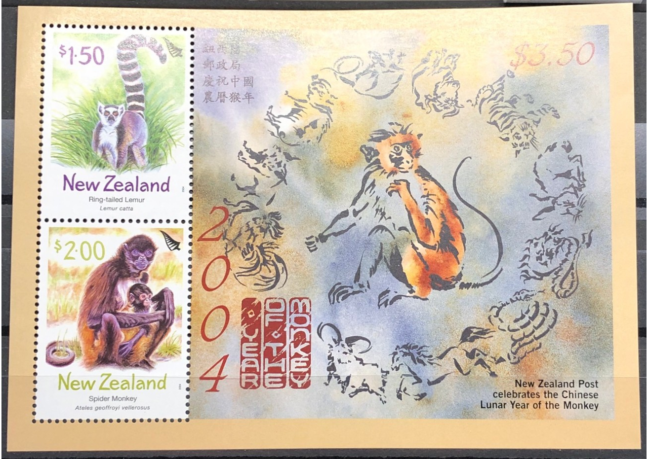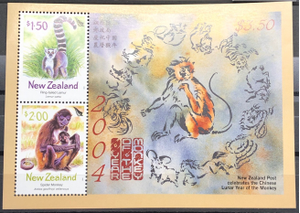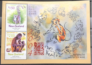New Year 2004, year of the monkey, chinese zodiac, 2004. Souvenir sheet.