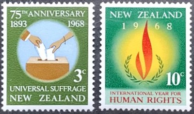 76th anniversary of universal suffrage in New Zealand; Int'l. Human Rights Year. Complete set of 2.