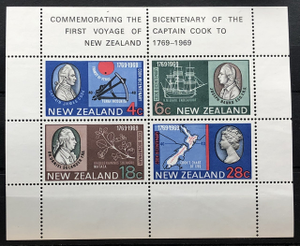 Bicentenary of the First Voyage of Captain Cook to New Zealand, 1969. Souvenir sheet.