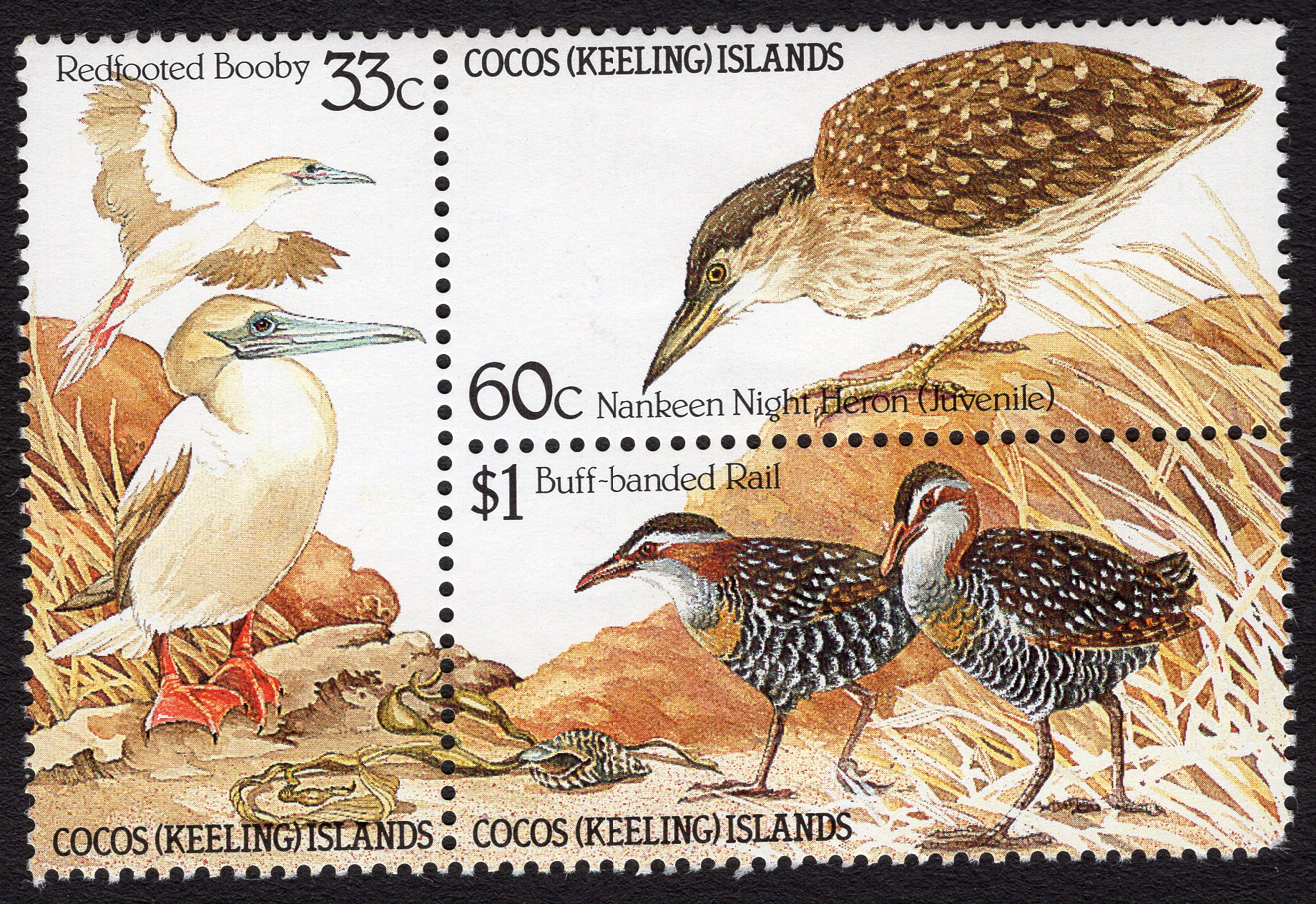 Cocos Islands Scott 134A. Block of 3. Mint. Never hinged.