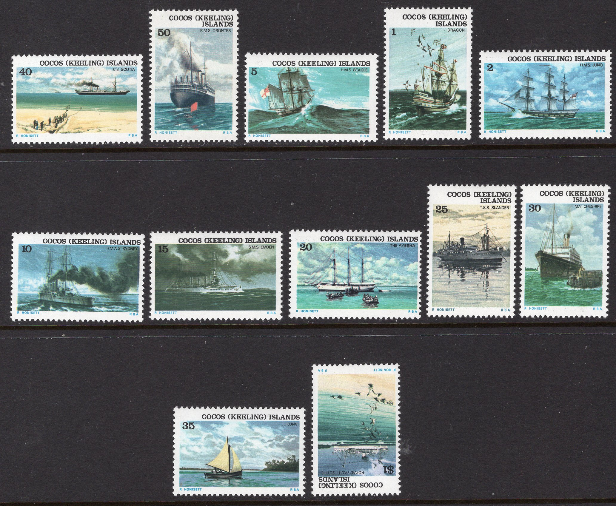 Cocos Islands Scott 20-31. Complete set. Mint. Never hinged.