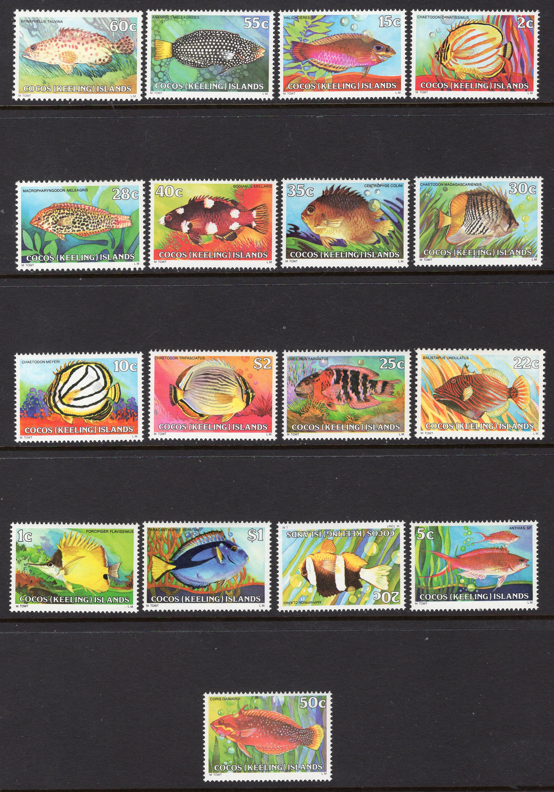 Cocos Islands Scott 34-50. Complete set. Mint. Never hinged.