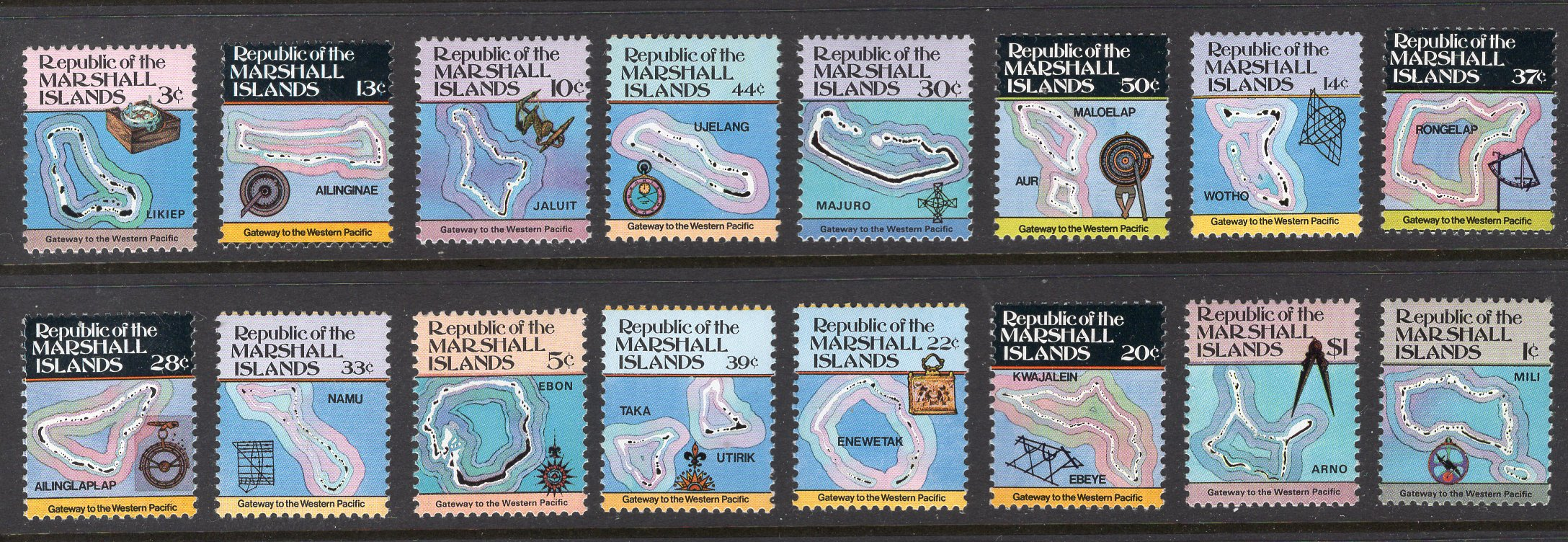 Marshall Islands Scott 35-49A. Complete set. Mint. Never hinged. 16 values.