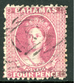 Bahamas 1863 QV 1p Rose Wmk CCC Perf 12½ Scott #12 VFU I203