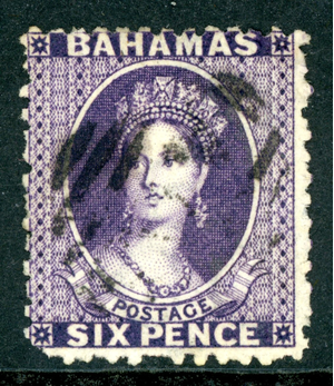 Bahamas 1863 QV 6p Dark Violet Wmk CCC Perf 12½ Scott #14 VFU I221