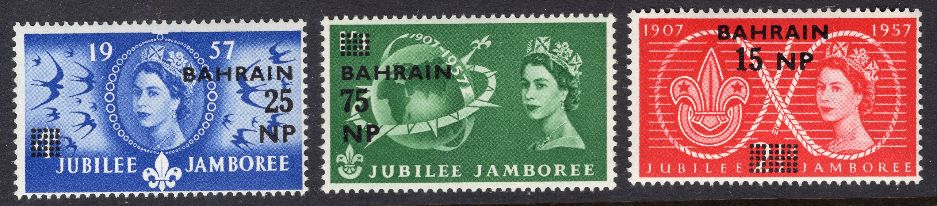 Bahrain Scott 115-117. Complete set. Mint. Never hinged. 3