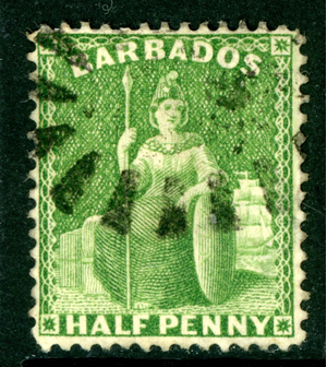 Barbados 1876 British QV ½p Green Perf 14 Scott #50 VFU K248 ⭐⭐⭐⭐⭐⭐