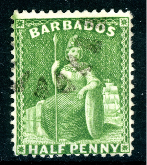 Barbados 1876 British QV ½p Green Perf 14 Scott #50 VFU K254 ⭐⭐⭐⭐⭐⭐