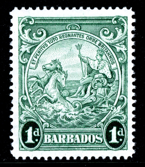 Barbados 1942 KGVI Badge of the Colony 1p Blue Green Perf 14 SG #249bc MNH M390