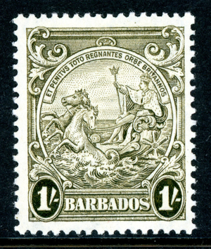 Barbados 1945 KGVI Badge of the Colony 1' Brown Olive SG #255a MNH M406