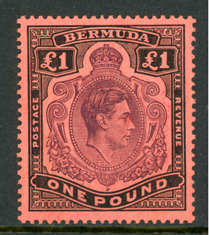 Bermuda 1938 KGVI £1 Black & Purple on Red Scott #128a Mint R44