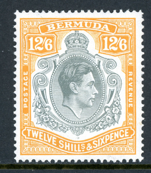 Bermuda 1938 KGVI 12 Shillings 6 Pence Yellow Orange & Gray Scott #127a Mint R43