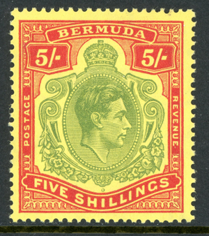 Bermuda 1938 KGVI 5 Shillings Red & Green Scott #125a Mint R41