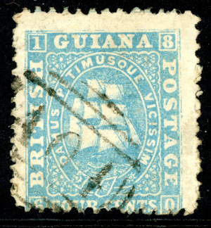 British Guiana 1860 British QV 4¢ Blue Perf 12 Thick Paper Sc#44 VFU P192