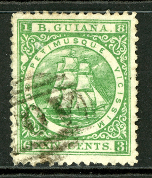 British Guiana 1864 QV 24¢ Green Thin Paper Perf 12½ Sc#68 VFU P164