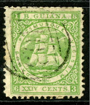 British Guiana 1864 QV 24¢ Green Thin Paper Perf 12 Sc#68 VFU P168