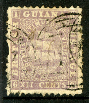 British Guiana 1867 British QV 12¢ Lilac Perf 12½ Medium Paper Sc#49 VFU P194