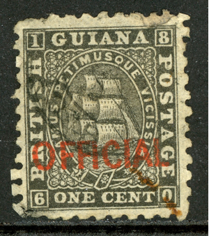 British Guiana 1875 QV 1¢ Black Perf 10 Sc#O1 VFU P155