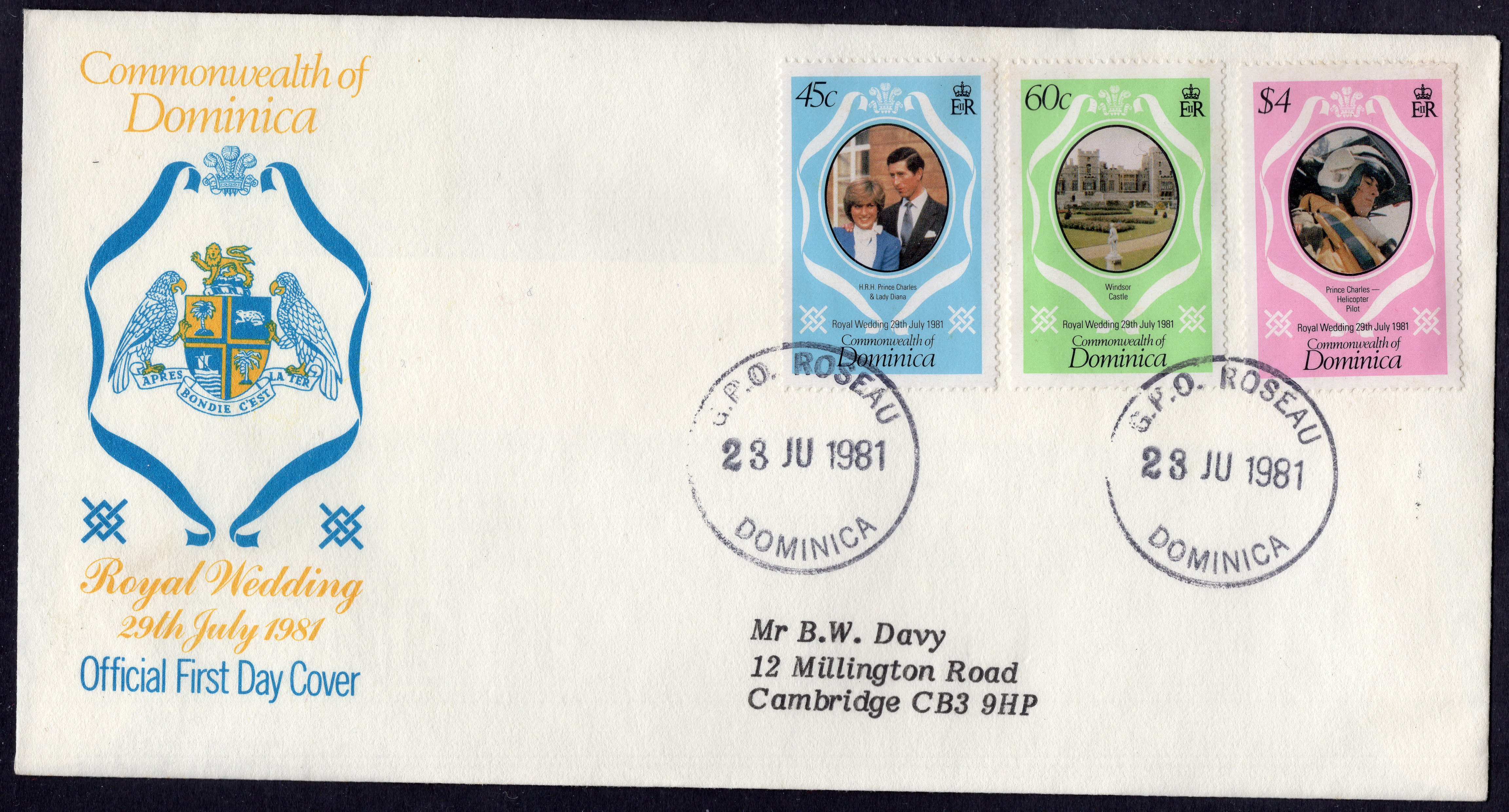 Dominica Scott 701-703. Complete set on First Day of Issue Cover.