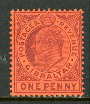Gibraltar 1904 British KEVII 1p Violet on Red MCCA Scott #50 Mint W619