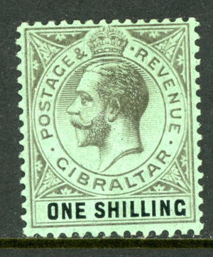 Gibraltar 1919 British KGV 1' Blue Green w/Olive Back MCCA Scott #71b Mint W603