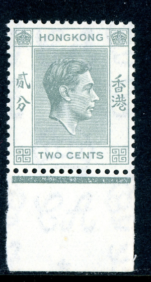 China 1938 Hong Kong 2¢ Gray KGVI Sc 155 Perf 14x14 MNH O316